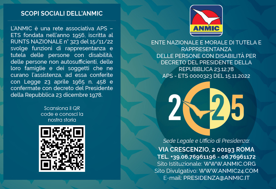 L’ANMIC è l’Ente morale con personalità giuridica di diritto privato che dal 1956 opera a tutela delle persone con disabilità. Riconosciuta ai sensi del Decreto del Presidente della Repubblica 23.12.1978, e in Puglia, dalla L.R. n. 6 del 08.03.2002.